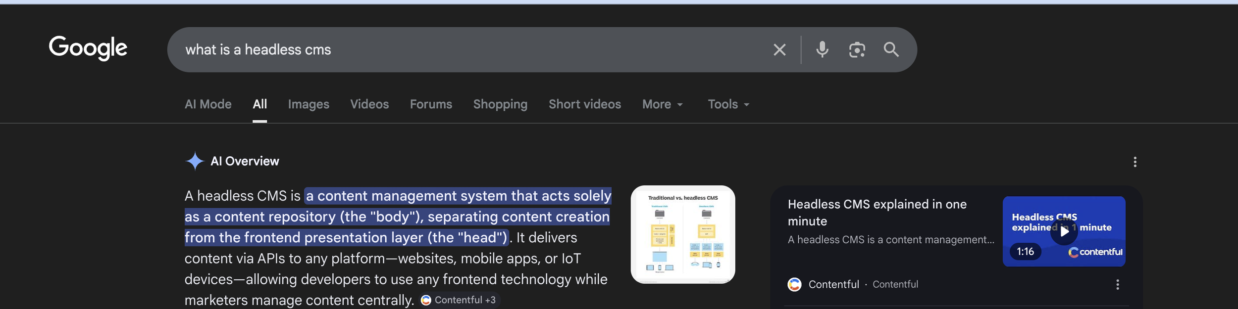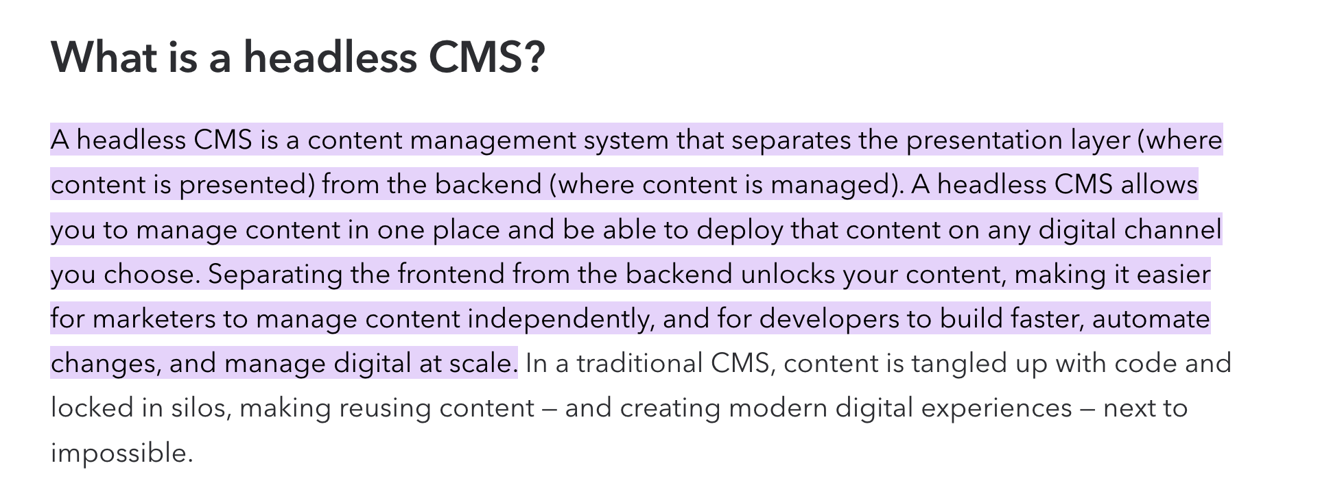 Years ago, I attempted writing a blog about “what is a headless CMS” for Contentful built on this principle, and it was the shortest piece for the keyword.